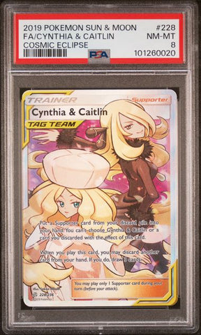 2019 Pokemon Sun & Moon Cosmic Eclipse #228 Cynthia & Caitlin (Full Art) PSA 8